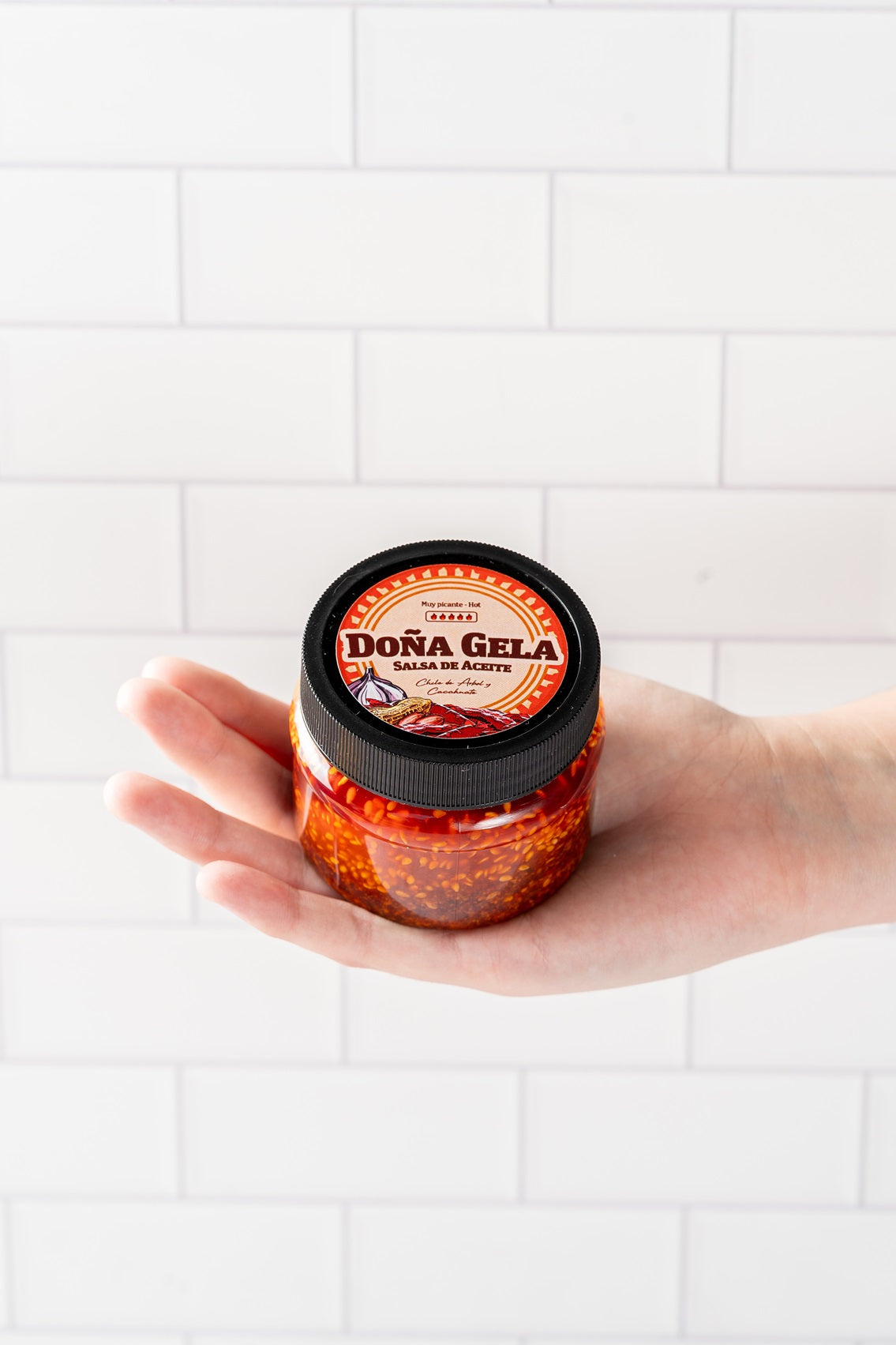 Ingredientes: Aceite de canola y/o girasol, mezcla de chiles secos, cacahuate, ajo y sal de mar.